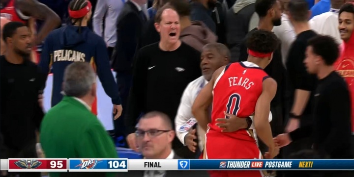 配资专业股票 鹈鹕雷霆比赛结束爆发剧烈冲突 多特费尔斯掐架 费尔斯被一路拦回