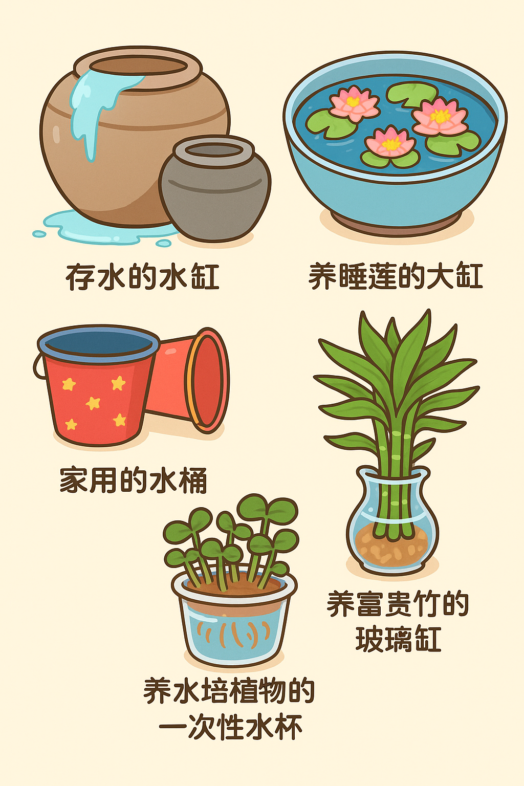走进阳台、庭院、天台,翻看所有可能积水的容器。